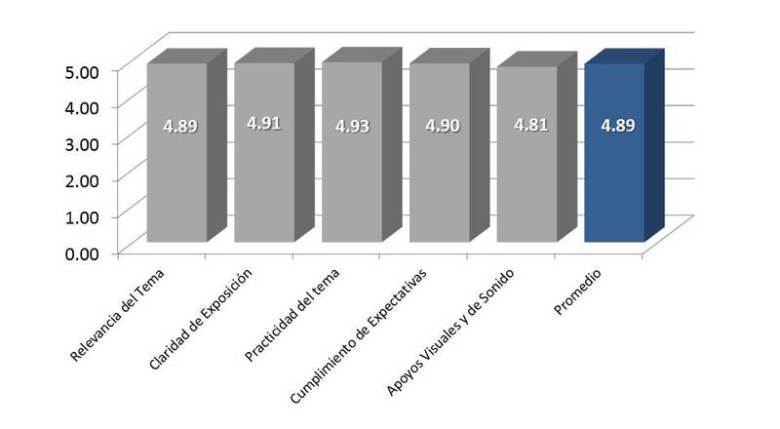Basado en escala de 5 puntos, estos son los resultados promedio de 95 exposiciones, conferencia y cursos: